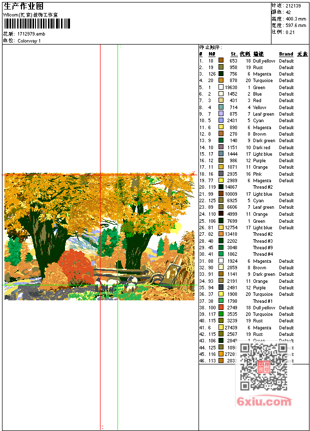 乱针丰收工艺精品 点此上传花版兑乐绣币/现金 emb花版参数: 大小:1.01 MB / 尺寸:598*400[毫米] / 针数:212139针 / 线色:42 / 格式:emb / 版本:5.5 版带文件需绣花软件方可打开,可配色打印导出各种格式或直接上机绣。如无绣花软件可下载1:1模拟效果图。 PNG图片信息:大小:8.0 (MB) /图宽*高:2261x1515(像素) 上传作者( 雷人*** ) 获得乐绣币:30个 emb下载 1:1图下载 关闭 相似花型推荐: 乱针白桦林小溪工艺精品 多色水溶领花 水溶l领花假领 水溶花朵 寿星公-精品工艺品 何仙姑贺寿-精品工艺品仙鹤 送子观音精品工艺品 满幅抽象花窗帘 帽子 衬衣仿绳绣领 滴水观音十字绣精品工艺品鲤鱼 满幅匹绣花朵 蓝猫踢球 战国马车 狗-斗牛犬 上一个花样:乱针红枫林工艺精品 下一个花样:乱针白桦林小溪工艺精品