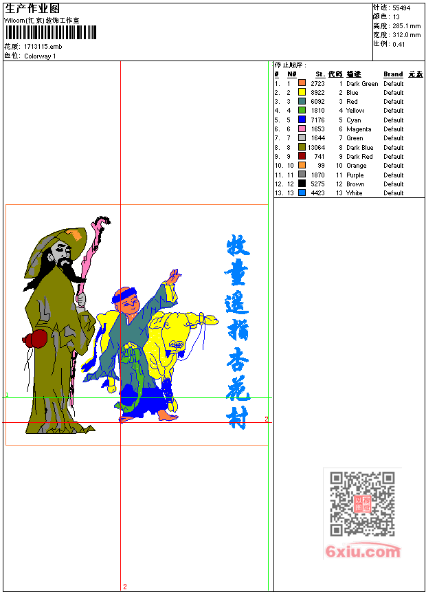 牧童遥指杏花村工艺精品 点此上传花版兑乐绣币/现金 emb花版参数: 大小:158.50 KB / 尺寸:312*285[毫米] / 针数:55495针 / 线色:13 / 格式:emb / 版本:7 版带文件需绣花软件方可打开,可配色打印导出各种格式或直接上机绣。如无绣花软件可下载1:1模拟效果图。 PNG图片信息:大小:1.0 (MB) /图宽*高:1181x1079(像素) 上传作者( 雷人*** ) 获得乐绣币:30个 emb下载 1:1图下载 关闭 相似花型推荐: 鸟章仔 章仔 直升飞机 电工 钓鱼章仔 龙虾 纸牌 马 壁虎 球队 鹰 山寨自由女神 猎人 鹰 暑假是娱(鱼)乐章仔 上一个花样:难得糊涂工艺精品 下一个花样:鸟章仔