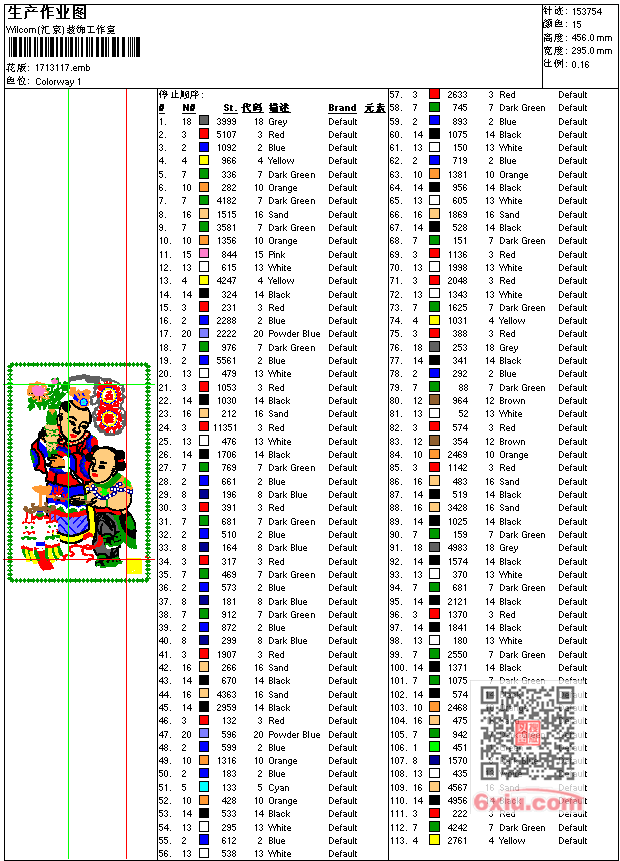 年画福娃工艺精品 点此上传花版兑乐绣币/现金 emb花版参数: 大小:725.00 KB / 尺寸:295*456[毫米] / 针数:153754针 / 线色:15 / 格式:emb / 版本:7 版带文件需绣花软件方可打开,可配色打印导出各种格式或直接上机绣。如无绣花软件可下载1:1模拟效果图。 PNG图片信息:大小:2.3 (MB) /图宽*高:1116x1725(像素) 上传作者( 雷人*** ) 获得乐绣币:30个 emb下载 1:1图下载 关闭 相似花型推荐: 难得糊涂工艺精品 牧童遥指杏花村工艺精品 鸟章仔 章仔 直升飞机 电工 钓鱼章仔 龙虾 纸牌 马 壁虎 球队 鹰 山寨自由女神 猎人 上一个花样:年年有余工艺精品 下一个花样:难得糊涂工艺精品