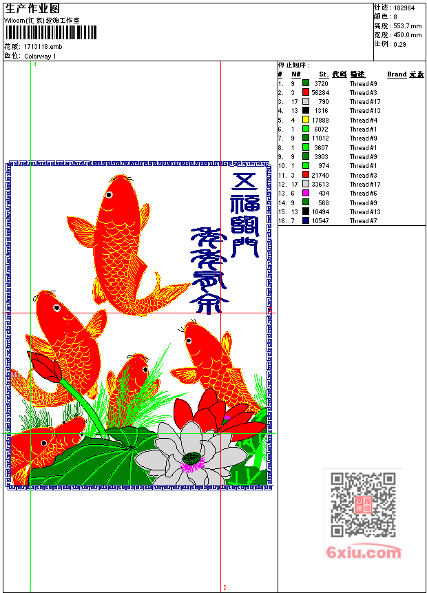 年年有余工艺精品 点此上传花版兑乐绣币/现金 emb花版参数: 大小:437.00 KB / 尺寸:450*554[毫米] / 针数:182964针 / 线色:8 / 格式:emb / 版本:7 版带文件需绣花软件方可打开,可配色打印导出各种格式或直接上机绣。如无绣花软件可下载1:1模拟效果图。 PNG图片信息:大小:3.6 (MB) /图宽*高:1703x2095(像素) 上传作者( 雷人*** ) 获得乐绣币:30个 emb下载 1:1图下载 关闭 相似花型推荐: 年画福娃工艺精品 难得糊涂工艺精品 牧童遥指杏花村工艺精品 鸟章仔 章仔 直升飞机 电工 钓鱼章仔 龙虾 纸牌 马 壁虎 球队 鹰 山寨自由女神 上一个花样:平安老鹰工艺精品 下一个花样:年画福娃工艺精品