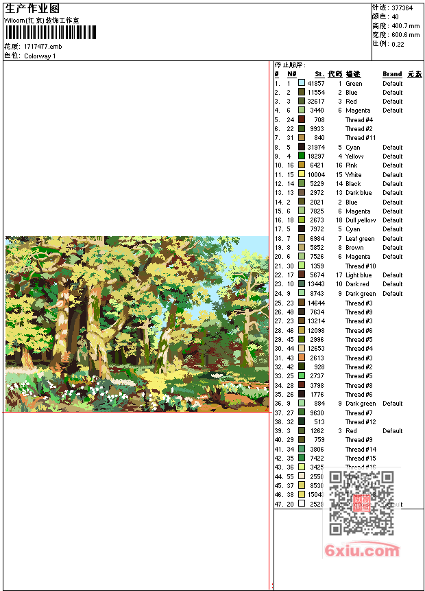 橡树林乱针绣工艺精品 点此上传花版兑乐绣币/现金 emb花版参数: 大小:2.61 MB / 尺寸:601*401[毫米] / 针数:377364针 / 线色:40 / 格式:emb / 版本:7 版带文件需绣花软件方可打开,可配色打印导出各种格式或直接上机绣。如无绣花软件可下载1:1模拟效果图。 PNG图片信息:大小:8.2 (MB) /图宽*高:2272x1516(像素) 上传作者( 雷人*** ) 获得乐绣币:30个 emb下载 1:1图下载 关闭 相似花型推荐: 西藏风光乱针绣工艺精品 退思园林乱针绣工艺精品 苏州园林乱针绣工艺精品 苗族美女思念工艺乱针绣精品 牡丹盛开的花工艺精品 燃烧的天空完工艺精品 青山绿水大好河山瀑布乱针绣工艺精品 黄果树瀑布乱针绣工艺精品 苍鹰劲松图工艺精品 喜雀报春工艺精品 井冈红叶工艺精品 龙凤报喜工艺精品 龙凤吉祥工艺精品 百鹤图工艺精品 神话八仙传说人物-李铁拐工艺精品 上一个花样:伟大领袖毛主席工艺精品 下一个花样:西藏风光乱针绣工艺精品