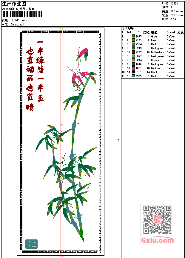 梅兰竹菊-竹工艺精品 点此上传花版兑乐绣币/现金 emb花版参数: 大小:235.50 KB / 尺寸:253*662[毫米] / 针数:43804针 / 线色:9 / 格式:emb / 版本:7 版带文件需绣花软件方可打开,可配色打印导出各种格式或直接上机绣。如无绣花软件可下载1:1模拟效果图。 PNG图片信息:大小:1.0 (MB) /图宽*高:957x2506(像素) 上传作者( 雷人*** ) 获得乐绣币:30个 emb下载 1:1图下载 关闭 相似花型推荐: 梅花香自苦寒来工艺精品 伟大领袖毛主席工艺精品 橡树林乱针绣工艺精品 西藏风光乱针绣工艺精品 退思园林乱针绣工艺精品 苏州园林乱针绣工艺精品 苗族美女思念工艺乱针绣精品 牡丹盛开的花工艺精品 燃烧的天空完工艺精品 青山绿水大好河山瀑布乱针绣工艺精品 黄果树瀑布乱针绣工艺精品 苍鹰劲松图工艺精品 喜雀报春工艺精品 井冈红叶工艺精品 龙凤报喜工艺精品 上一个花样:美女工艺精品 下一个花样:梅花香自苦寒来工艺精品