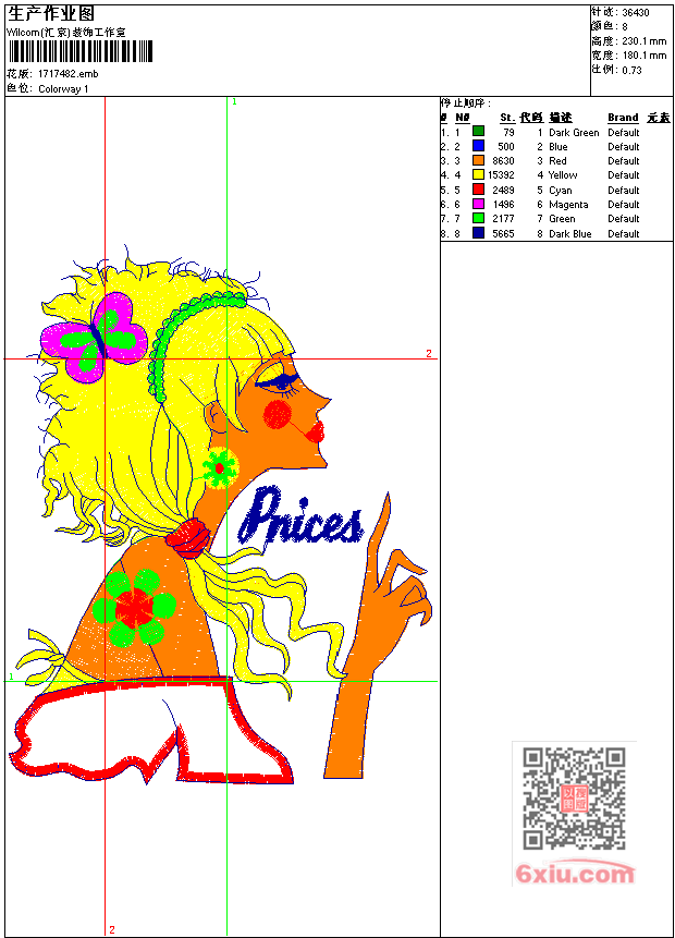 美女工艺精品 点此上传花版兑乐绣币/现金 emb花版参数: 大小:116.50 KB / 尺寸:180*230[毫米] / 针数:36430针 / 线色:8 / 格式:emb / 版本:7 版带文件需绣花软件方可打开,可配色打印导出各种格式或直接上机绣。如无绣花软件可下载1:1模拟效果图。 PNG图片信息:大小:0.7 (MB) /图宽*高:682x871(像素) 上传作者( 雷人*** ) 获得乐绣币:30个 emb下载 1:1图下载 关闭 相似花型推荐: 梅兰竹菊-竹工艺精品 梅花香自苦寒来工艺精品 伟大领袖毛主席工艺精品 橡树林乱针绣工艺精品 西藏风光乱针绣工艺精品 退思园林乱针绣工艺精品 苏州园林乱针绣工艺精品 苗族美女思念工艺乱针绣精品 牡丹盛开的花工艺精品 燃烧的天空完工艺精品 青山绿水大好河山瀑布乱针绣工艺精品 黄果树瀑布乱针绣工艺精品 苍鹰劲松图工艺精品 喜雀报春工艺精品 井冈红叶工艺精品 上一个花样:美女弹琴工艺精品 下一个花样:梅兰竹菊-竹工艺精品