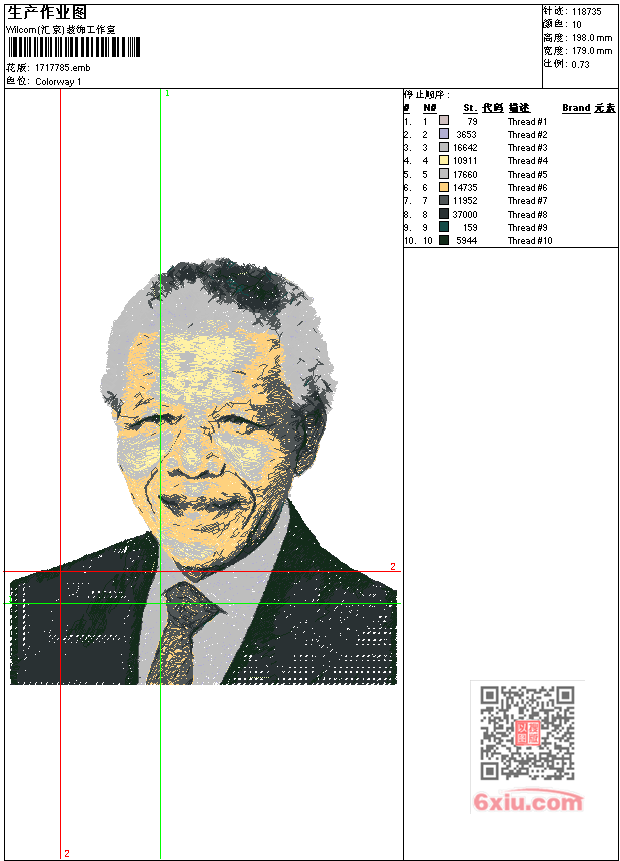 曼德拉-名人头像乱针工艺精品 点此上传花版兑乐绣币/现金 emb花版参数: 大小:427.00 KB / 尺寸:179*198[毫米] / 针数:118735针 / 线色:10 / 格式:emb / 版本:7 版带文件需绣花软件方可打开,可配色打印导出各种格式或直接上机绣。如无绣花软件可下载1:1模拟效果图。 PNG图片信息:大小:0.8 (MB) /图宽*高:678x749(像素) 上传作者( 雷人*** ) 获得乐绣币:30个 emb下载 1:1图下载 关闭 相似花型推荐: 狼头工艺精品 九寨沟乱针风景工艺精品 静物桌子乱针工艺精品 锦鸡立冬乱针工艺精品 金秋小道乱针树林风景工艺精品 幽幽小谷乱针城堡风景工艺精品 大花衣角 裙大花对称 相思鸟 满副衣襟女装 中老年花蝴蝶 美女与玉兔 仙童麒麟神话古典 大幅乱花 经典唐装花 上一个花样:猫-美国猫乱针工艺精品 下一个花样:狼头工艺精品