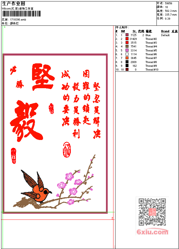 坚毅工艺精品 点此上传花版兑乐绣币/现金 emb花版参数: 大小:215.50 KB / 尺寸:336*502[毫米] / 针数:59856针 / 线色:10 / 格式:emb / 版本:9 版带文件需绣花软件方可打开,可配色打印导出各种格式或直接上机绣。如无绣花软件可下载1:1模拟效果图。 PNG图片信息:大小:1.1 (MB) /图宽*高:1270x1900(像素) 上传作者( 雷人*** ) 获得乐绣币:30个 emb下载 1:1图下载 关闭 相似花型推荐: 金龙在天工艺精品 金秋乱针绣工艺精品 菊工艺精品 菊花工艺精品 鸟聚会乱针绣工艺精品 龙 佛绣 佛绣 佛绣 佛绣 佛绣 佛绣 佛绣 佛绣 水溶馬甲版 上一个花样:花工艺精品 下一个花样:金龙在天工艺精品