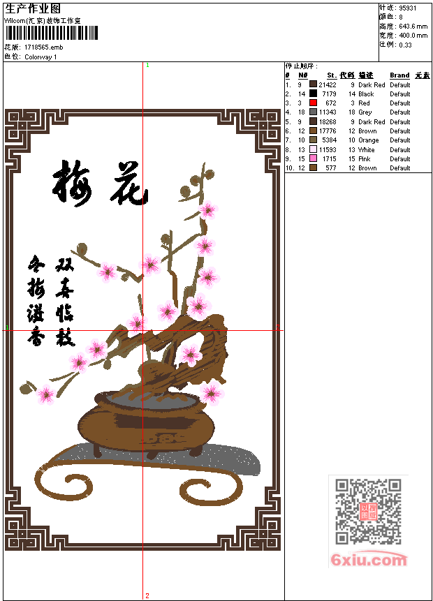 梅花工艺精品 点此上传花版兑乐绣币/现金 emb花版参数: 大小:249.00 KB / 尺寸:400*644[毫米] / 针数:95931针 / 线色:8 / 格式:emb / 版本:9 版带文件需绣花软件方可打开,可配色打印导出各种格式或直接上机绣。如无绣花软件可下载1:1模拟效果图。 PNG图片信息:大小:2.6 (MB) /图宽*高:1513x2435(像素) 上传作者( 雷人*** ) 获得乐绣币:30个 emb下载 1:1图下载 关闭 相似花型推荐: 梅兰竹菊-工笔兰工艺精品 梅兰竹菊-国画梅工艺精品 美少女工艺精品 猛虎工艺精品 莫生气工艺精品 墨竹兰石工艺精品 墨竹水仙工艺精品 牡丹工艺精品 牡丹工艺精品 牡丹工艺精品 青泉石上流乱针绣工艺精品风景 萬代鸳鸯工艺精品 人像速写工艺精品 三屏鹤工艺精品 山清水秀工艺精品 上一个花样:鱼跃龙门工艺精品 下一个花样:梅兰竹菊-工笔兰工艺精品