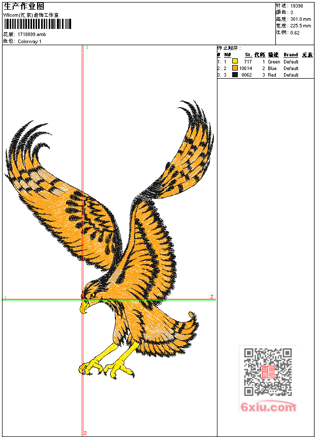 雄鹰展翅工艺精品 点此上传花版兑乐绣币/现金 emb花版参数: 大小:137.50 KB / 尺寸:226*301[毫米] / 针数:19398针 / 线色:3 / 格式:emb / 版本:9 版带文件需绣花软件方可打开,可配色打印导出各种格式或直接上机绣。如无绣花软件可下载1:1模拟效果图。 PNG图片信息:大小:0.8 (MB) /图宽*高:853x1139(像素) 上传作者( 雷人*** ) 获得乐绣币:30个 emb下载 1:1图下载 关闭 相似花型推荐: 熊猫工艺精品 燕舞春风工艺精品 一帆风顺工艺精品 一帆风顺工艺精品 鹰与奋斗工艺精品 迎客松工艺精品 鱼和莲花工艺精品 鱼跃龙门工艺精品 梅花工艺精品 梅兰竹菊-工笔兰工艺精品 梅兰竹菊-国画梅工艺精品 美少女工艺精品 猛虎工艺精品 莫生气工艺精品 墨竹兰石工艺精品 上一个花样:心想事成工艺精品 下一个花样:熊猫工艺精品