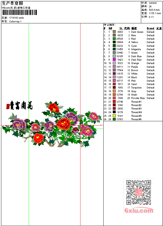 牡丹花-花开富贵工艺精品 点此上传花版兑乐绣币/现金 emb花版参数: 大小:1.62 MB / 尺寸:1135*528[毫米] / 针数:341841针 / 线色:26 / 格式:emb / 版本:7 版带文件需绣花软件方可打开,可配色打印导出各种格式或直接上机绣。如无绣花软件可下载1:1模拟效果图。 PNG图片信息:大小:8.7 (MB) /图宽*高:4294x1998(像素) 上传作者( 雷人*** ) 获得乐绣币:30个 emb下载 1:1图下载 关闭 相似花型推荐: 牡丹花大百鹤-松树 图工艺精品 鸭子工艺精品 子独爱莲工艺精品 福字工艺精品 袈裟-佛 鞋垫花 POLO-骑马保罗 贴布绣可爱公仔 仙鹤工艺精品 乡村夏日乱针绣工艺精品 小猫乱针绣工艺精品 欣欣向荣-向日葵-乱针绣工艺精品 心想事成工艺精品 雄鹰展翅工艺精品 熊猫工艺精品 上一个花样:孩童-传统人物工艺精品 下一个花样:牡丹花大百鹤-松树 图工艺精品