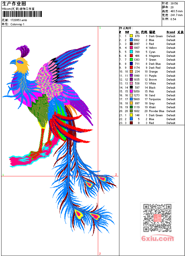 凤凰工艺精品 点此上传花版兑乐绣币/现金 emb花版参数: 大小:206.50 KB / 尺寸:242*404[毫米] / 针数:39156针 / 线色:20 / 格式:emb / 版本:7 版带文件需绣花软件方可打开,可配色打印导出各种格式或直接上机绣。如无绣花软件可下载1:1模拟效果图。 PNG图片信息:大小:1.2 (MB) /图宽*高:915x1527(像素) 上传作者( 雷人*** ) 获得乐绣币:30个 emb下载 1:1图下载 关闭 相似花型推荐: 凤凰工艺精品 雁南飞工艺精品 鹰-大展鸿图工艺精品 梅花-春意透南枝工艺精品 花 茶字工艺精品 孔雀-用在家纺上 海马 轮船章仔 船舵 鬼脸 旗赛车 鹰章仔枪 章仔手枪 豹动物 上一个花样:凤凰工艺精品 下一个花样:凤凰工艺精品