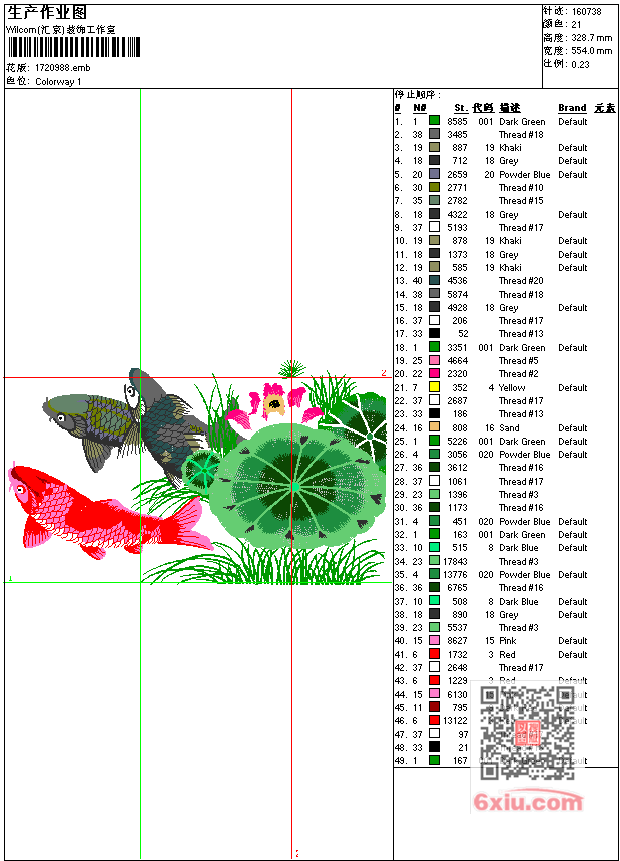 荷花鲤鱼工艺精品 点此上传花版兑乐绣币/现金 emb花版参数: 大小:556.00 KB / 尺寸:554*329[毫米] / 针数:160738针 / 线色:21 / 格式:emb / 版本:7 版带文件需绣花软件方可打开,可配色打印导出各种格式或直接上机绣。如无绣花软件可下载1:1模拟效果图。 PNG图片信息:大小:3.5 (MB) /图宽*高:2096x1244(像素) 上传作者( 雷人*** ) 获得乐绣币:30个 emb下载 1:1图下载 关闭 相似花型推荐: 牡丹花国色天香工艺精品 凤凰工艺精品 福字工艺精品 佛光普照工艺精品 凤凰工艺精品 凤凰工艺精品 凤凰工艺精品 雁南飞工艺精品 鹰-大展鸿图工艺精品 梅花-春意透南枝工艺精品 花 茶字工艺精品 孔雀-用在家纺上 海马 轮船章仔 上一个花样:精品年年有余工艺 下一个花样:牡丹花国色天香工艺精品