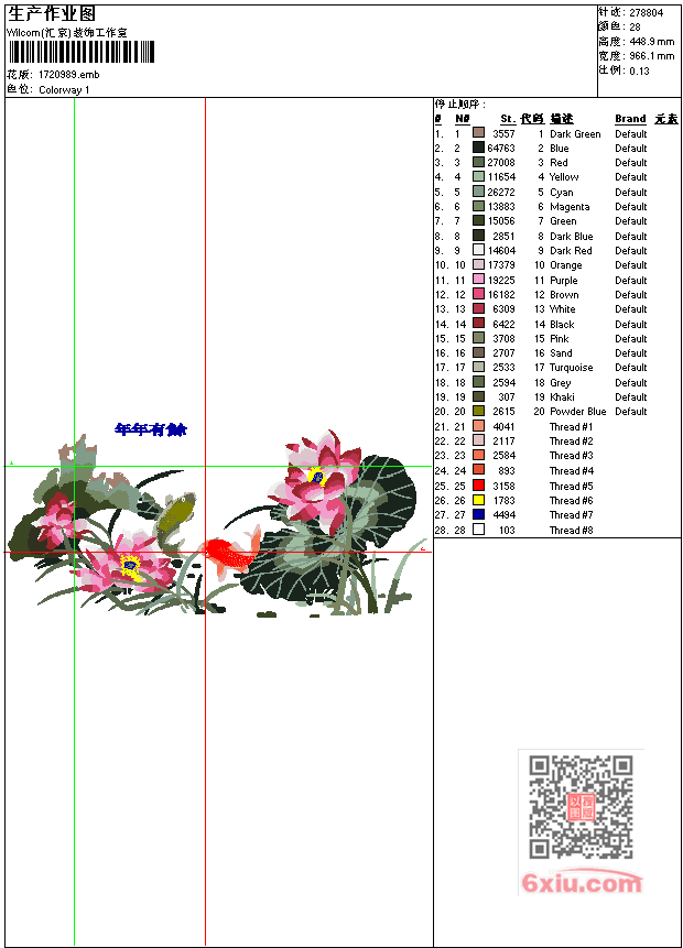 精品年年有余工艺 点此上传花版兑乐绣币/现金 emb花版参数: 大小:1.24 MB / 尺寸:966*449[毫米] / 针数:278804针 / 线色:28 / 格式:emb / 版本:7 版带文件需绣花软件方可打开,可配色打印导出各种格式或直接上机绣。如无绣花软件可下载1:1模拟效果图。 PNG图片信息:大小:6.6 (MB) /图宽*高:3655x1698(像素) 上传作者( 雷人*** ) 获得乐绣币:30个 emb下载 1:1图下载 关闭 相似花型推荐: 荷花鲤鱼工艺精品 牡丹花国色天香工艺精品 凤凰工艺精品 福字工艺精品 佛光普照工艺精品 凤凰工艺精品 凤凰工艺精品 凤凰工艺精品 雁南飞工艺精品 鹰-大展鸿图工艺精品 梅花-春意透南枝工艺精品 花 茶字工艺精品 孔雀-用在家纺上 海马 上一个花样:观音工艺精品 下一个花样:荷花鲤鱼工艺精品