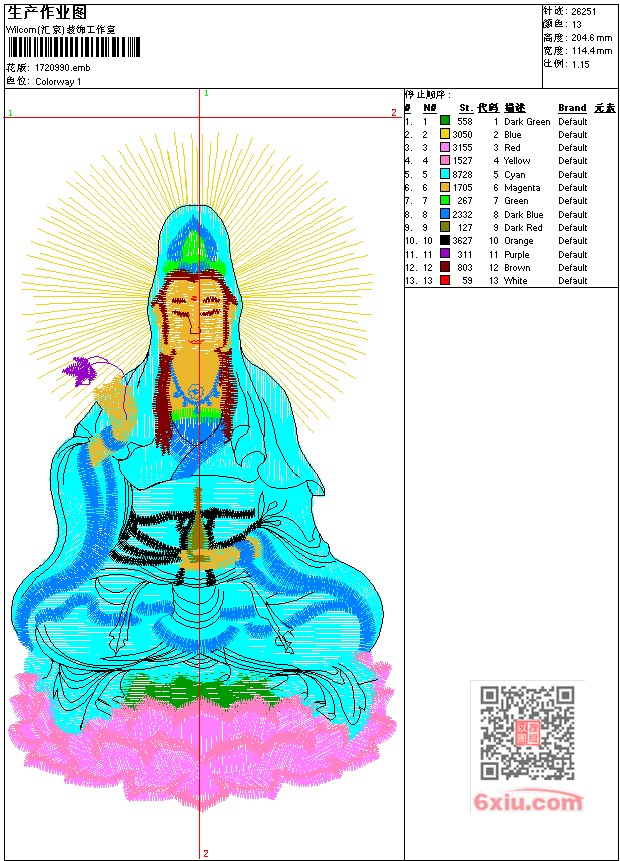 观音工艺精品 点此上传花版兑乐绣币/现金 emb花版参数: 大小:105.00 KB / 尺寸:114*205[毫米] / 针数:26252针 / 线色:13 / 格式:emb / 版本:7 版带文件需绣花软件方可打开,可配色打印导出各种格式或直接上机绣。如无绣花软件可下载1:1模拟效果图。 PNG图片信息:大小:0.5 (MB) /图宽*高:433x774(像素) 上传作者( 雷人*** ) 获得乐绣币:30个 emb下载 1:1图下载 关闭 相似花型推荐: 精品年年有余工艺 荷花鲤鱼工艺精品 牡丹花国色天香工艺精品 凤凰工艺精品 福字工艺精品 佛光普照工艺精品 凤凰工艺精品 凤凰工艺精品 凤凰工艺精品 雁南飞工艺精品 鹰-大展鸿图工艺精品 梅花-春意透南枝工艺精品 花 茶字工艺精品 孔雀-用在家纺上 上一个花样:鲤鱼工艺精品 下一个花样:精品年年有余工艺