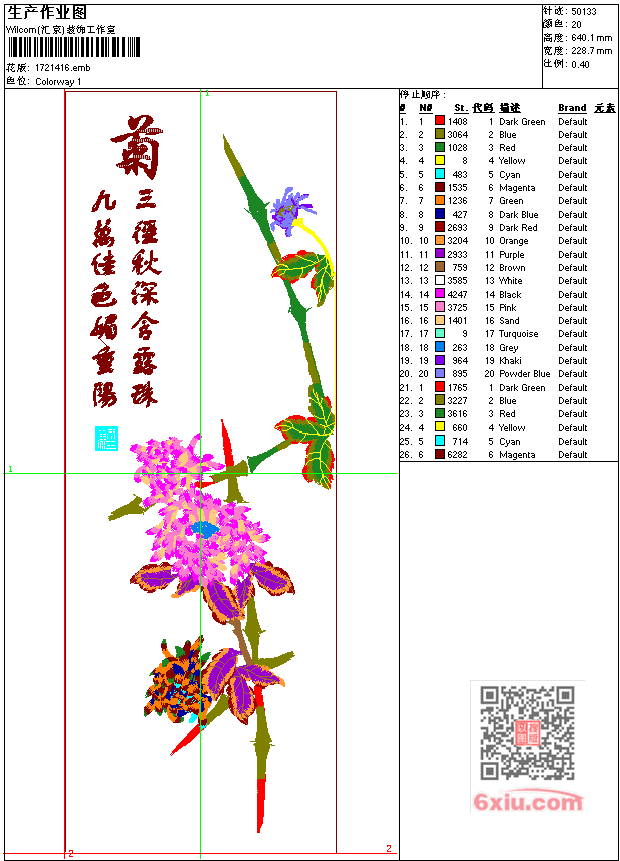 菊工艺精品 点此上传花版兑乐绣币/现金 emb花版参数: 大小:356.50 KB / 尺寸:229*640[毫米] / 针数:50133针 / 线色:20 / 格式:emb / 版本:7 版带文件需绣花软件方可打开,可配色打印导出各种格式或直接上机绣。如无绣花软件可下载1:1模拟效果图。 PNG图片信息:大小:1.1 (MB) /图宽*高:866x2422(像素) 上传作者( 雷人*** ) 获得乐绣币:30个 emb下载 1:1图下载 关闭 相似花型推荐: 菊花工艺精品 猴招财工艺精品 十字绣家和万事兴工艺精品 鸟吉祥工艺精品 虎工艺精品 狮子章仔 狼标 鹰鸟 鱼标 狮标章 熊动物 剑章仔 狮子动物 狗动物 人物 上一个花样:向日葵工艺精品 下一个花样:菊花工艺精品