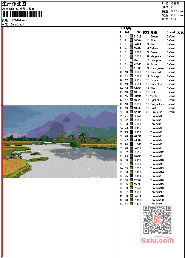 风景-秋山水画乱针绣工艺精品 点此上传花版兑乐绣币/现金 emb花版参数: 大小:2.16 MB / 尺寸:800*501[毫米] / 针数:459870针 / 线色:41 / 格式:emb / 版本:7 版带文件需绣花软件方可打开,可配色打印导出各种格式或直接上机绣。如无绣花软件可下载1:1模拟效果图。 PNG图片信息:大小:12.3 (MB) /图宽*高:3025x1895(像素) 上传作者( 雷人*** ) 获得乐绣币:30个 emb下载 1:1图下载 关闭 相似花型推荐: 人物蒙娜丽莎-精品工艺 马-精品工艺 狗动物 虎动物 蝴蝶大花版工艺精品 孔雀工艺精品 向日葵工艺精品 菊工艺精品 菊花工艺精品 猴招财工艺精品 十字绣家和万事兴工艺精品 鸟吉祥工艺精品 虎工艺精品 狮子章仔 狼标 上一个花样:风景-山清水秀乱针绣工艺精品 下一个花样:人物蒙娜丽莎-精品工艺