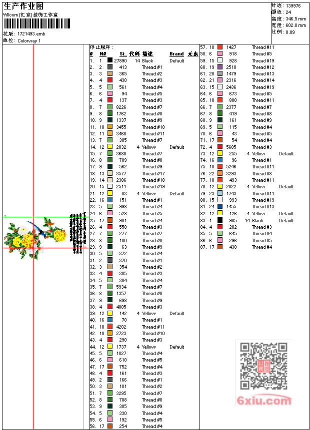 牡丹花鸟富贵吉祥长寿工艺精品 点此上传花版兑乐绣币/现金 emb花版参数: 大小:730.00 KB / 尺寸:602*346[毫米] / 针数:139976针 / 线色:24 / 格式:emb / 版本:9 版带文件需绣花软件方可打开,可配色打印导出各种格式或直接上机绣。如无绣花软件可下载1:1模拟效果图。 PNG图片信息:大小:2.3 (MB) /图宽*高:2278x1311(像素) 上传作者( 雷人*** ) 获得乐绣币:30个 emb下载 1:1图下载 关闭 相似花型推荐: 福工艺精品 凤凰工艺精品 人物海盗 鹰 章仔蝙蝠 鱼-鲨鱼 鸟章仔 人物武士 船 马卡通 花朵蜜蜂 汽车 狗章仔标 鹰章仔 鱼牡丹花吉祥唐装 上一个花样:林间小屋-精品工艺 下一个花样:福工艺精品