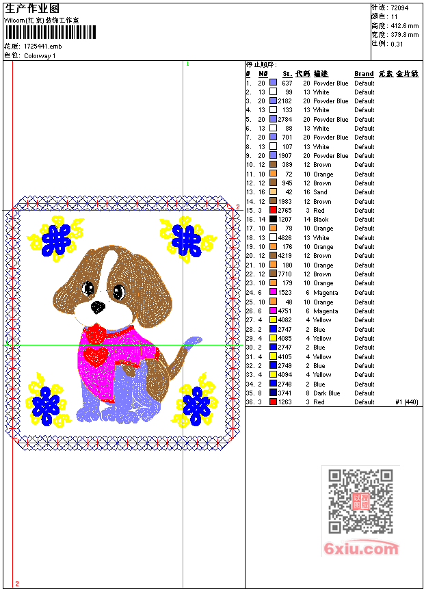 毛巾小狗工艺精品 点此上传花版兑乐绣币/现金 emb花版参数: 大小:417.50 KB / 尺寸:380*413[毫米] / 针数:72094针 / 线色:11 / 格式:emb / 版本:7 版带文件需绣花软件方可打开,可配色打印导出各种格式或直接上机绣。如无绣花软件可下载1:1模拟效果图。 PNG图片信息:大小:2.0 (MB) /图宽*高:1437x1561(像素) 上传作者( 雷人*** ) 获得乐绣币:30个 emb下载 1:1图下载 关闭 相似花型推荐: 嬉戏猫咪-乱针绣工艺精品 美女工艺精品 茅草屋小桥流水-工艺精品 牛 牛bulls 武士头盔 鹰 狮标 武士 骑马章 足球章 手枪 卡车 老鼠 字母标 上一个花样:毛巾绣熊猫工艺精品 下一个花样:嬉戏猫咪-乱针绣工艺精品