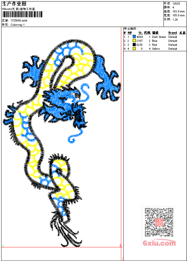 龙工艺精品 点此上传花版兑乐绣币/现金 emb花版参数: 大小:86.50 KB / 尺寸:105*184[毫米] / 针数:12629针 / 线色:4 / 格式:emb / 版本:7 版带文件需绣花软件方可打开,可配色打印导出各种格式或直接上机绣。如无绣花软件可下载1:1模拟效果图。 PNG图片信息:大小:0.2 (MB) /图宽*高:398x696(像素) 上传作者( 雷人*** ) 获得乐绣币:30个 emb下载 1:1图下载 关闭 相似花型推荐: 竹林猛虎工艺精品 竹报平安-鸟字画-工艺精品 夏日如碧-山水画-工艺精品 皇冠章 鹰章 卡车标 骷髅标 童男孩 鹰翅膀章 手枪章 山姆大叔章 鹰标 手枪 马horse 火鸡鸟 上一个花样:坐莲观音工艺精品 下一个花样:竹林猛虎工艺精品