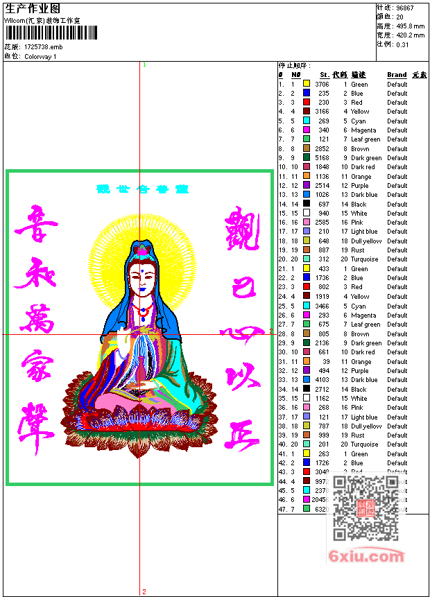 坐莲观音工艺精品 点此上传花版兑乐绣币/现金 emb花版参数: 大小:444.50 KB / 尺寸:420*496[毫米] / 针数:96867针 / 线色:20 / 格式:emb / 版本:e1.5 版带文件需绣花软件方可打开,可配色打印导出各种格式或直接上机绣。如无绣花软件可下载1:1模拟效果图。 PNG图片信息:大小:2.2 (MB) /图宽*高:1590x1876(像素) 上传作者( 雷人*** ) 获得乐绣币:30个 emb下载 1:1图下载 关闭 相似花型推荐: 龙工艺精品 竹林猛虎工艺精品 竹报平安-鸟字画-工艺精品 夏日如碧-山水画-工艺精品 皇冠章 鹰章 卡车标 骷髅标 童男孩 鹰翅膀章 手枪章 山姆大叔章 鹰标 手枪 马horse 上一个花样:花鸟蝴蝶 工艺精品 下一个花样:龙工艺精品