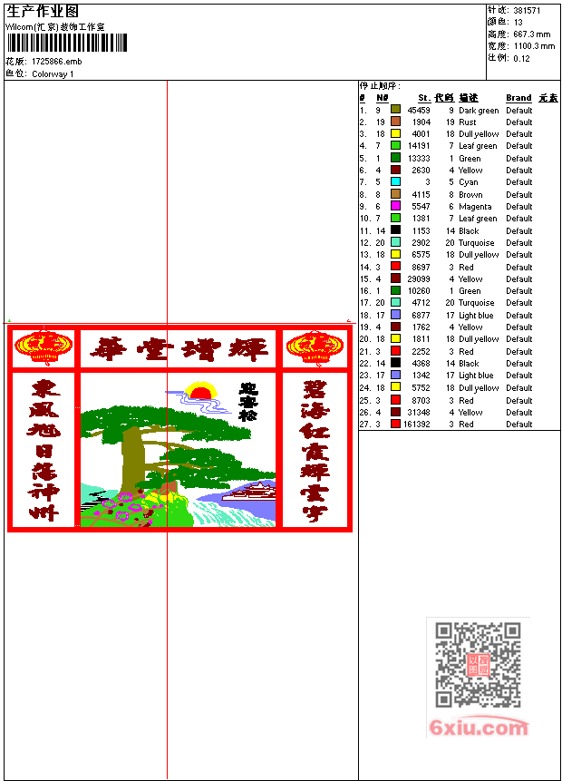 劲松迎客中堂画工艺精品 点此上传花版兑乐绣币/现金 emb花版参数: 大小:807.00 KB / 尺寸:1100*667[毫米] / 针数:381571针 / 线色:13 / 格式:emb / 版本:e1.5 版带文件需绣花软件方可打开,可配色打印导出各种格式或直接上机绣。如无绣花软件可下载1:1模拟效果图。 PNG图片信息:大小:9.0 (MB) /图宽*高:4162x2525(像素) 上传作者( 雷人*** ) 获得乐绣币:30个 emb下载 1:1图下载 关闭 相似花型推荐: 富贵祯祥大花-十字绣工艺精品 眷侣图-鸟-梅花-工艺精品 满园春光-牡丹花-竹-工艺精品 鹰 五角星 章仔 章仔 章仔 猪骑摩托卡通 章仔 racing章仔 章仔 北极熊 贴布狗 鸟吉祥花 上一个花样:花开富贵-牡丹花-精品工艺品 下一个花样:富贵祯祥大花-十字绣工艺精品