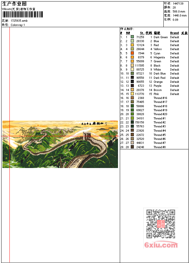 十字绣长城雄姿工艺精品 点此上传花版兑乐绣币/现金 emb花版参数: 大小:640.50 KB / 尺寸:1440*588[毫米] / 针数:1447139针 / 线色:28 / 格式:emb / 版本:7 版带文件需绣花软件方可打开,可配色打印导出各种格式或直接上机绣。如无绣花软件可下载1:1模拟效果图。 PNG图片信息:大小:8.7 (MB) /图宽*高:5447x2225(像素) 上传作者( 雷人*** ) 获得乐绣币:30个 emb下载 1:1图下载 关闭 相似花型推荐: 十字绣千秋伟业工艺精品 人物小孩卡通 牛卡通 鹰 fitness章仔 怪物鬼脸 骑马牛仔 章仔 章仔 章仔 马章仔 色花水溶馬甲 水溶馬甲 龙 孔雀 上一个花样:松鹤延年工艺精品 下一个花样:十字绣千秋伟业工艺精品