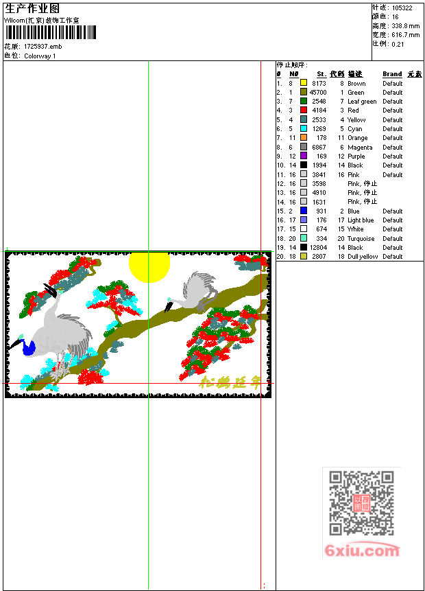 松鹤延年工艺精品 点此上传花版兑乐绣币/现金 emb花版参数: 大小:441.00 KB / 尺寸:617*339[毫米] / 针数:105322针 / 线色:16 / 格式:emb / 版本:e1.5 版带文件需绣花软件方可打开,可配色打印导出各种格式或直接上机绣。如无绣花软件可下载1:1模拟效果图。 PNG图片信息:大小:2.7 (MB) /图宽*高:2333x1282(像素) 上传作者( 雷人*** ) 获得乐绣币:30个 emb下载 1:1图下载 关闭 相似花型推荐: 十字绣长城雄姿工艺精品 十字绣千秋伟业工艺精品 人物小孩卡通 牛卡通 鹰 fitness章仔 怪物鬼脸 骑马牛仔 章仔 章仔 章仔 马章仔 色花水溶馬甲 水溶馬甲 龙 上一个花样:老虎 下一个花样:十字绣长城雄姿工艺精品