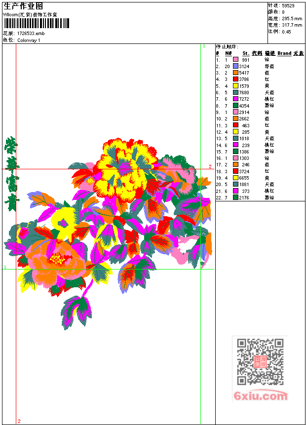 牡丹 富贵荣华牡丹花工艺精品 靓花 点此上传花版兑乐绣币/现金 emb花版参数: 大小:175.50 KB / 尺寸:318*296[毫米] / 针数:59529针 / 线色:8 / 格式:emb / 版本:7 版带文件需绣花软件方可打开,可配色打印导出各种格式或直接上机绣。如无绣花软件可下载1:1模拟效果图。 PNG图片信息:大小:1.6 (MB) /图宽*高:1202x1118(像素) 上传作者( 雷人*** ) 获得乐绣币:30个 emb下载 1:1图下载 关闭 相似花型推荐: 猴子摘桃 武士头 球队标 武士头 骷髅赛手 骷髅赛手 武士头 足球 男孩卡通 豹 章标 骷髅标 狗章 臂章 胸标 上一个花样:牡丹花-荣华富贵工艺精品 下一个花样:猴子摘桃