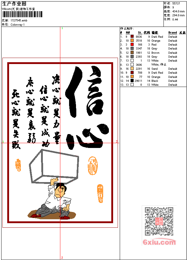 信心工艺精品 点此上传花版兑乐绣币/现金 emb花版参数: 大小:145.50 KB / 尺寸:294*434[毫米] / 针数:55737针 / 线色:9 / 格式:emb / 版本:7 版带文件需绣花软件方可打开,可配色打印导出各种格式或直接上机绣。如无绣花软件可下载1:1模拟效果图。 PNG图片信息:大小:1.0 (MB) /图宽*高:1113x1642(像素) 上传作者( 雷人*** ) 获得乐绣币:30个 emb下载 1:1图下载 关闭 相似花型推荐: 鹰 靓仔 老鼠高尔夫 握剑武士 蜻蜓 海盗标 立体绣鹰 狗狗标 梅花 鸟-花 龙 十字绣花朵 龙 人物-和尚 骷髅军团 上一个花样:招财进宝工艺精品 下一个花样:鹰