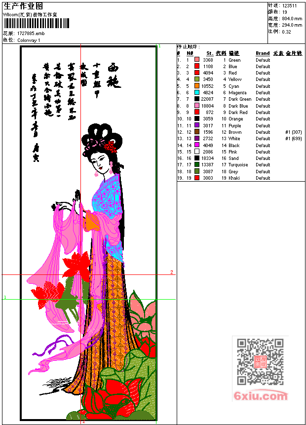 美女-四美图-西施工艺精品 点此上传花版兑乐绣币/现金 emb花版参数: 大小:594.00 KB / 尺寸:294*804[毫米] / 针数:123511针 / 线色:19 / 格式:emb / 版本:7 版带文件需绣花软件方可打开,可配色打印导出各种格式或直接上机绣。如无绣花软件可下载1:1模拟效果图。 PNG图片信息:大小:3.2 (MB) /图宽*高:1113x3042(像素) 上传作者( 雷人*** ) 获得乐绣币:30个 emb下载 1:1图下载 关闭 相似花型推荐: 王冠-黑桃皇后 梅花-衣领 田间别墅工艺精品 腾龙工艺精品 唐装龙工艺精品 和尚-精品-快乐 条码牛仔 鱼-吉祥 凤凰 凤凰 简单线条 龙 孔雀 鬼脸 气球人 上一个花样:猪 十二生肖-猪工艺精品 下一个花样:王冠-黑桃皇后