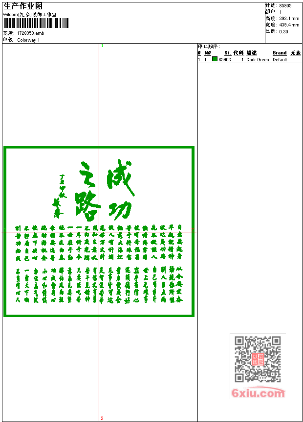 成功之路工艺精品字画 点此上传花版兑乐绣币/现金 emb花版参数: 大小:431.50 KB / 尺寸:439*393[毫米] / 针数:85933针 / 线色:1 / 格式:emb / 版本:7 版带文件需绣花软件方可打开,可配色打印导出各种格式或直接上机绣。如无绣花软件可下载1:1模拟效果图。 PNG图片信息:大小:1.0 (MB) /图宽*高:1662x1487(像素) 上传作者( 雷人*** ) 获得乐绣币:30个 emb下载 1:1图下载 关闭 相似花型推荐: 狮子 虎 KENZo 老虎 新版 鱼 双鱼 吉祥 中国风 龙 青龙 龙盘 椰树 鹰 猴子 龙 孙悟空 齐天大圣 西游记 工艺精品 龙上青天 布贴 人物 女孩 美女 男装 印第安人头衣服 骷髅 戴皇冠骷髅头 鱼 美人鱼衣服后幅 虎 老虎 牡丹花 家纺 大花 被花 上一个花样:鸟工艺精品特种绣花 下一个花样:狮子