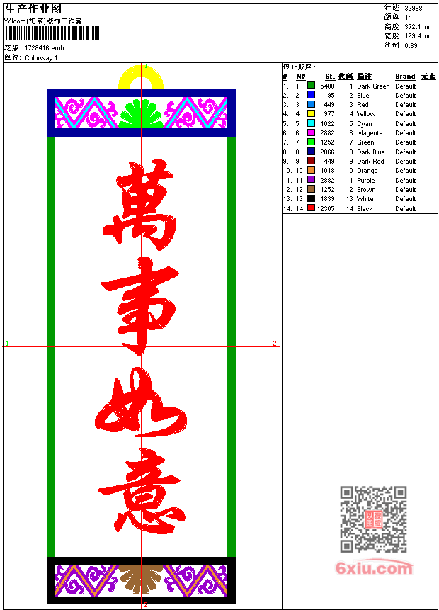 字画 万事如意工艺精品 点此上传花版兑乐绣币/现金 emb花版参数: 大小:99.50 KB / 尺寸:129*372[毫米] / 针数:34006针 / 线色:14 / 格式:emb / 版本:7 版带文件需绣花软件方可打开,可配色打印导出各种格式或直接上机绣。如无绣花软件可下载1:1模拟效果图。 PNG图片信息:大小:0.5 (MB) /图宽*高:490x1408(像素) 上传作者( 雷人*** ) 获得乐绣币:30个 emb下载 1:1图下载 关闭 相似花型推荐: 兔 字画 信心工艺精品 屋 江南水乡 小河流水工艺精品 乱针绣 鱼 鲤鱼工艺精品 人物 三星报喜 神仙 中国风 迎祥纳福工艺精 鸟 鹦鹉工艺精品 船 一帆风顺案工艺精品 骷髅头抽象 树 椰子树 虎头工艺精品 鸳鸯 爱相随工艺精品 龙工艺精品 福工艺精品 梅花工艺精品 鸟工艺精品特种绣花 成功之路工艺精品字画 上一个花样:花 蝴蝶 胸前大花工艺精品 下一个花样:兔 字画 信心工艺精品