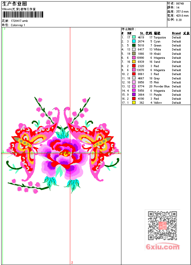 花 蝴蝶 胸前大花工艺精品 点此上传花版兑乐绣币/现金 emb花版参数: 大小:385.50 KB / 尺寸:430*357[毫米] / 针数:99749针 / 线色:14 / 格式:emb / 版本:7 版带文件需绣花软件方可打开,可配色打印导出各种格式或直接上机绣。如无绣花软件可下载1:1模拟效果图。 PNG图片信息:大小:2.3 (MB) /图宽*高:1626x1351(像素) 上传作者( 雷人*** ) 获得乐绣币:30个 emb下载 1:1图下载 关闭 相似花型推荐: 字画 万事如意工艺精品 兔 字画 信心工艺精品 屋 江南水乡 小河流水工艺精品 乱针绣 鱼 鲤鱼工艺精品 人物 三星报喜 神仙 中国风 迎祥纳福工艺精 鸟 鹦鹉工艺精品 船 一帆风顺案工艺精品 骷髅头抽象 树 椰子树 虎头工艺精品 鸳鸯 爱相随工艺精品 龙工艺精品 福工艺精品 梅花工艺精品 鸟工艺精品特种绣花 上一个花样:狗 贴布小狗 下一个花样:字画 万事如意工艺精品