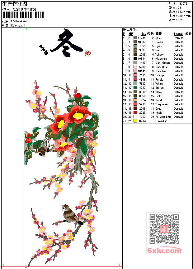 鸟 大花 春夏秋冬-[冬] 鸟 花 工艺精品 点此上传花版兑乐绣币/现金 emb花版参数: 大小:567.50 KB / 尺寸:299*953[毫米] / 针数:113072针 / 线色:21 / 格式:emb / 版本:7 版带文件需绣花软件方可打开,可配色打印导出各种格式或直接上机绣。如无绣花软件可下载1:1模拟效果图。 PNG图片信息:大小:3.0 (MB) /图宽*高:1130x3604(像素) 上传作者( 雷人*** ) 获得乐绣币:30个 emb下载 1:1图下载 关闭 相似花型推荐: 鼠 十二生肖之鼠工艺精品 骷髅头与斧头 口袋 猫 戴皇冠的猫咪 蜘蛛侠 人物 花 大花 民族 鹰 龙 狗 贴布小狗 花 蝴蝶 胸前大花工艺精品 字画 万事如意工艺精品 兔 字画 信心工艺精品 屋 江南水乡 小河流水工艺精品 乱针绣 鱼 鲤鱼工艺精品 人物 三星报喜 神仙 中国风 迎祥纳福工艺精 鸟 鹦鹉工艺精品 上一个花样:风景 山水 银装素裹工艺精品 下一个花样:鼠 十二生肖之鼠工艺精品