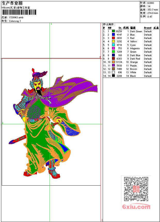 人物将军工艺精品 点此上传花版兑乐绣币/现金 emb花版参数: 大小:208.00 KB / 尺寸:274*354[毫米] / 针数:63993针 / 线色:14 / 格式:emb / 版本:7 版带文件需绣花软件方可打开,可配色打印导出各种格式或直接上机绣。如无绣花软件可下载1:1模拟效果图。 PNG图片信息:大小:1.0 (MB) /图宽*高:1037x1338(像素) 上传作者( 雷人*** ) 获得乐绣币:30个 emb下载 1:1图下载 关闭 相似花型推荐: 字画-家和万事兴工艺精品 香蕉珠片 虎-kenzo-老虎-新虎头带贴布 梅花与鸟工艺精品 牡丹花开富贵工艺精品 人物 美女 花旦工艺精品 虎啸工艺精品-老虎 虎工艺精品-老虎 水溶蝴蝶 牡丹花 鳄鱼 牙刷绣 猫头鹰 鱼-花-中国风 船-一帆风顺-精品工艺品 鹿-童装 上一个花样:竹报平安锦鸡-鸟-孔雀-工艺精品 下一个花样:字画-家和万事兴工艺精品