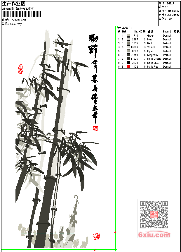 梅兰竹菊-竹工艺精品 点此上传花版兑乐绣币/现金 emb花版参数: 大小:291.00 KB / 尺寸:351*692[毫米] / 针数:64227针 / 线色:9 / 格式:emb / 版本:7 版带文件需绣花软件方可打开,可配色打印导出各种格式或直接上机绣。如无绣花软件可下载1:1模拟效果图。 PNG图片信息:大小:2.3 (MB) /图宽*高:1329x2616(像素) 上传作者( 雷人*** ) 获得乐绣币:30个 emb下载 1:1图下载 关闭 相似花型推荐: 梅兰竹菊-菊工艺精品 龙-双龙福工艺精品 字画-诚信工艺精品 鸡-十二生肖-公鸡工艺精品 龙-工艺精品 龙-工艺精品 窗帘莲花 窗帘珠片 玫瑰花毛巾绣 人物-财神-元宝童-精品工艺品 佛祖-阿弥陀佛-人物-精品工艺品 龙 龙 玫瑰花章仔 嘴唇章仔 上一个花样:梅兰竹菊-竹工艺精品 下一个花样:梅兰竹菊-菊工艺精品