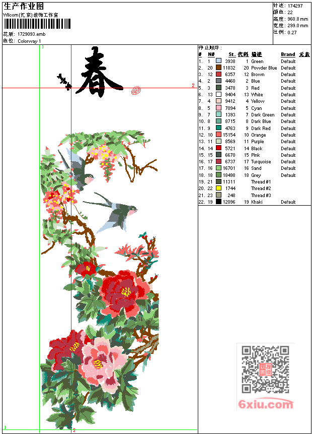 春夏秋冬[春]工艺精品-牡丹花-鸟 点此上传花版兑乐绣币/现金 emb花版参数: 大小:859.00 KB / 尺寸:299*961[毫米] / 针数:174297针 / 线色:22 / 格式:emb / 版本:7 版带文件需绣花软件方可打开,可配色打印导出各种格式或直接上机绣。如无绣花软件可下载1:1模拟效果图。 PNG图片信息:大小:4.1 (MB) /图宽*高:1132x3635(像素) 上传作者( 雷人*** ) 获得乐绣币:30个 emb下载 1:1图下载 关闭 相似花型推荐: 梅兰竹菊-竹工艺精品 梅兰竹菊-竹工艺精品 梅兰竹菊-菊工艺精品 龙-双龙福工艺精品 字画-诚信工艺精品 鸡-十二生肖-公鸡工艺精品 龙-工艺精品 龙-工艺精品 窗帘莲花 窗帘珠片 玫瑰花毛巾绣 人物-财神-元宝童-精品工艺品 佛祖-阿弥陀佛-人物-精品工艺品 龙 龙 上一个花样:珠片-眼睛-服装 眼镜 下一个花样:梅兰竹菊-竹工艺精品