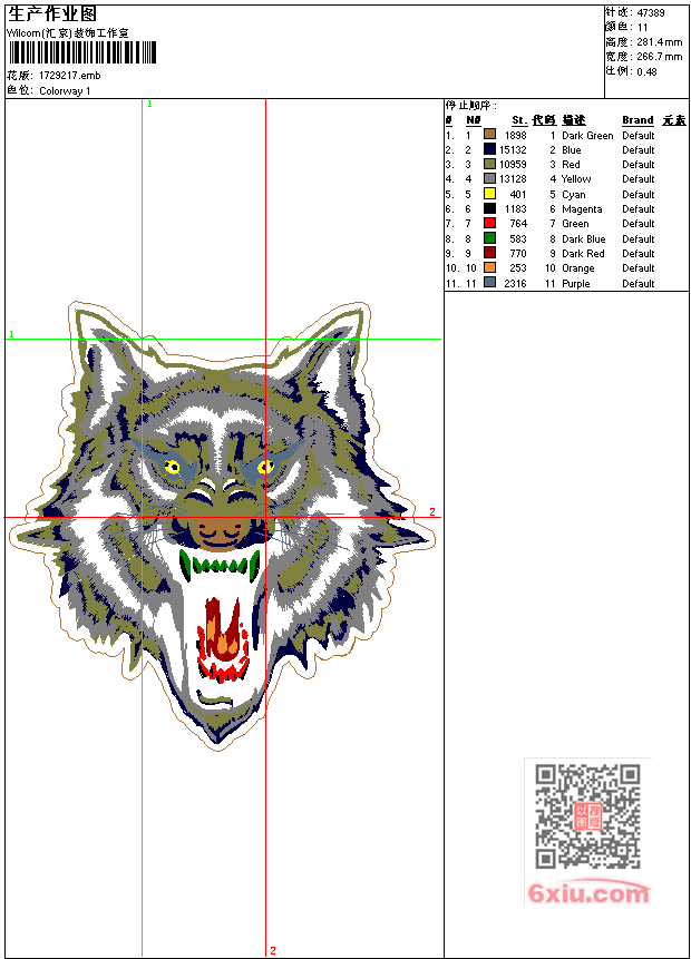 狼头工艺精品 点此上传花版兑乐绣币/现金 emb花版参数: 大小:241.50 KB / 尺寸:267*281[毫米] / 针数:47389针 / 线色:11 / 格式:emb / 版本:7 版带文件需绣花软件方可打开,可配色打印导出各种格式或直接上机绣。如无绣花软件可下载1:1模拟效果图。 PNG图片信息:大小:1.0 (MB) /图宽*高:1009x1065(像素) 上传作者( 雷人*** ) 获得乐绣币:30个 emb下载 1:1图下载 关闭 相似花型推荐: 花-蝴蝶-中国风 马-珠片-亮片五色马 风景-江南水乡工艺精品-桥-船 虎-老虎工艺精品 龙球工艺精品 龙年大吉工艺精品 猫-黑猫章仔-贴布童装 鳄鱼章仔-童装 眼镜-T恤-风衣-面具 虎-跳跳虎-后背老虎-童装卡通 虎-跳跳虎-后背老虎-童装卡通 锚-章仔 锚-章仔 鱼-鲤鱼图-工艺精品 珠片-衣领-多色金片绣 上一个花样:鹰-老鹰工艺精品-鸟 下一个花样:花-蝴蝶-中国风