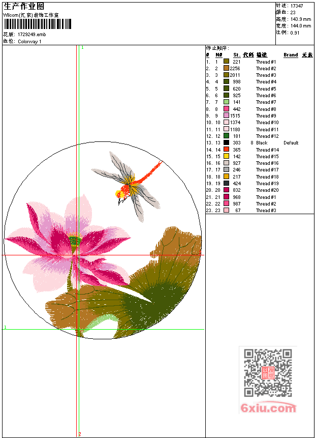 荷花-蜻蜓-工艺精品 点此上传花版兑乐绣币/现金 emb花版参数: 大小:120.00 KB / 尺寸:144*144[毫米] / 针数:17347针 / 线色:23 / 格式:emb / 版本:7 版带文件需绣花软件方可打开,可配色打印导出各种格式或直接上机绣。如无绣花软件可下载1:1模拟效果图。 PNG图片信息:大小:0.3 (MB) /图宽*高:545x545(像素) 上传作者( 雷人*** ) 获得乐绣币:30个 emb下载 1:1图下载 关闭 相似花型推荐: 荷花-蜻蜓-工艺精品 鹿-小鹿-童装卡通-珠片 鹰-老鹰-鸟-珠片 鸟-珠片 龙风喜工艺精品 龙飞凤舞工艺精品 风景-柳树湾工艺精品 佛-莲花佛工艺精品 鹰-老鹰工艺精品-鸟 狼头工艺精品 花-蝴蝶-中国风 马-珠片-亮片五色马 风景-江南水乡工艺精品-桥-船 虎-老虎工艺精品 龙球工艺精品 上一个花样:鸟-牡丹花图工艺精品 下一个花样:荷花-蜻蜓-工艺精品