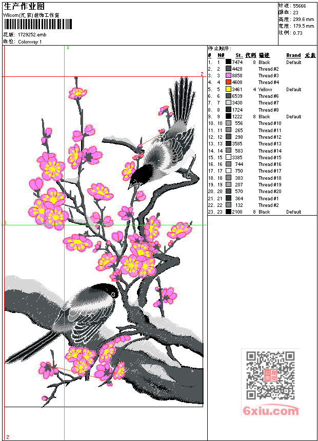鸟-梅花-梅鹊报春图工艺精品 点此上传花版兑乐绣币/现金 emb花版参数: 大小:301.00 KB / 尺寸:180*300[毫米] / 针数:55666针 / 线色:23 / 格式:emb / 版本:7 版带文件需绣花软件方可打开,可配色打印导出各种格式或直接上机绣。如无绣花软件可下载1:1模拟效果图。 PNG图片信息:大小:0.8 (MB) /图宽*高:679x1134(像素) 上传作者( 雷人*** ) 获得乐绣币:50个 emb下载 1:1图下载 关闭 相似花型推荐: 菊花螳螂工艺精品 鸟-牡丹花图工艺精品 荷花-蜻蜓-工艺精品 荷花-蜻蜓-工艺精品 鹿-小鹿-童装卡通-珠片 鹰-老鹰-鸟-珠片 鸟-珠片 龙风喜工艺精品 龙飞凤舞工艺精品 风景-柳树湾工艺精品 佛-莲花佛工艺精品 鹰-老鹰工艺精品-鸟 狼头工艺精品 花-蝴蝶-中国风 马-珠片-亮片五色马 上一个花样:马-八骏图工艺精品 下一个花样:菊花螳螂工艺精品