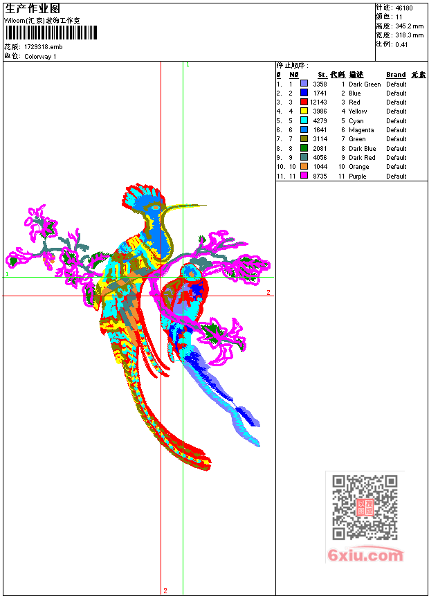 鸟-孔雀-工艺精品 点此上传花版兑乐绣币/现金 emb花版参数: 大小:223.00 KB / 尺寸:318*345[毫米] / 针数:46180针 / 线色:11 / 格式:emb / 版本:7 版带文件需绣花软件方可打开,可配色打印导出各种格式或直接上机绣。如无绣花软件可下载1:1模拟效果图。 PNG图片信息:大小:1.1 (MB) /图宽*高:1204x1306(像素) 上传作者( 雷人*** ) 获得乐绣币:30个 emb下载 1:1图下载 关闭 相似花型推荐: 花篮-童装 花-家纺=-桃花 鹰-大展鸿图工艺精品 马-八骏图工艺精品 鸟-梅花-梅鹊报春图工艺精品 菊花螳螂工艺精品 鸟-牡丹花图工艺精品 荷花-蜻蜓-工艺精品 荷花-蜻蜓-工艺精品 鹿-小鹿-童装卡通-珠片 鹰-老鹰-鸟-珠片 鸟-珠片 龙风喜工艺精品 龙飞凤舞工艺精品 风景-柳树湾工艺精品 上一个花样:福工艺精品 下一个花样:花篮-童装