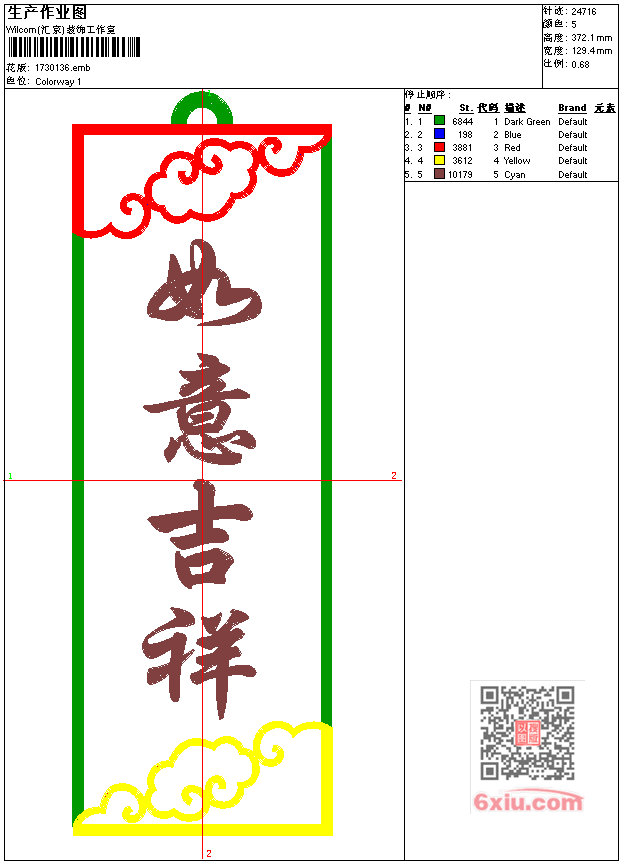 字画 如意吉祥工艺精品 点此上传花版兑乐绣币/现金 emb花版参数: 大小:61.50 KB / 尺寸:129*372[毫米] / 针数:24724针 / 线色:5 / 格式:emb / 版本:7 版带文件需绣花软件方可打开,可配色打印导出各种格式或直接上机绣。如无绣花软件可下载1:1模拟效果图。 PNG图片信息:大小:0.4 (MB) /图宽*高:490x1408(像素) 上传作者( 雷人*** ) 获得乐绣币:30个 emb下载 1:1图下载 关闭 相似花型推荐: 熊猫工艺精品 龙吐珠工艺绣精品-吉祥 虎-老虎工艺精品 虎-老虎工艺精品 男孩 卡通 辛普森一家 字母 一生有爱 中文 家纺 女孩 贴布 卡通 凤凰-中国风 花 匹绣 春暖花开 家纺 鸟-大花-牡丹花-窗帘-精品 枕头-欧式抱枕花-古典 羊-小绵羊-童装卡通 小花-唐装小花 领花 虎-毛巾绣老虎头 上一个花样:字画 心想事成工艺精品 下一个花样:熊猫工艺精品
