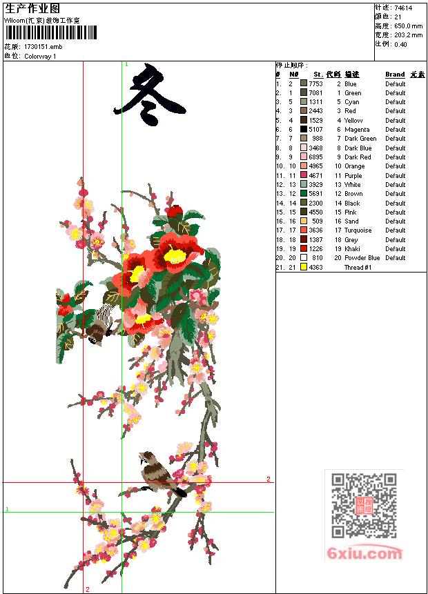 鸟花-春夏秋冬工艺精品 点此上传花版兑乐绣币/现金 emb花版参数: 大小:464.50 KB / 尺寸:203*650[毫米] / 针数:74614针 / 线色:21 / 格式:emb / 版本:7 版带文件需绣花软件方可打开,可配色打印导出各种格式或直接上机绣。如无绣花软件可下载1:1模拟效果图。 PNG图片信息:大小:1.5 (MB) /图宽*高:769x2459(像素) 上传作者( 雷人*** ) 获得乐绣币:30个 emb下载 1:1图下载 关闭 相似花型推荐: 鹰 大展鸿图雄鹰展翅工艺精品 水果-菠萝工艺精品 人物 八仙 荣华富贵工艺精品 花 春夏秋冬-秋工艺精品 牡丹花 荣华工艺精品 牡丹花-花瓶工艺精品 鸳鸯戏水工艺精品 鸳鸯戏水工艺精品 字画友情工艺精品 人物 埃及法老工艺精品 羊工艺精品 鹤松-雁南归工艺精品 狼-雪狼工艺精品-动物 字画 心想事成工艺精品 字画 如意吉祥工艺精品 上一个花样:人物 敦煌佛像工艺精品 下一个花样:鹰 大展鸿图雄鹰展翅工艺精品
