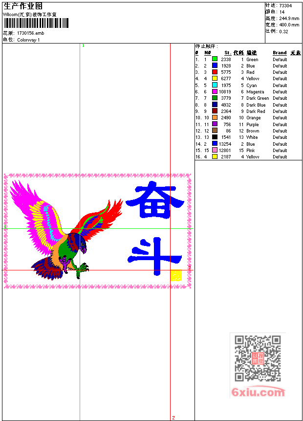鹰 奋斗 字画 铭志工艺精品 点此上传花版兑乐绣币/现金 emb花版参数: 大小:301.50 KB / 尺寸:400*245[毫米] / 针数:73304针 / 线色:14 / 格式:emb / 版本:7 版带文件需绣花软件方可打开,可配色打印导出各种格式或直接上机绣。如无绣花软件可下载1:1模拟效果图。 PNG图片信息:大小:1.0 (MB) /图宽*高:1513x927(像素) 上传作者( 雷人*** ) 获得乐绣币:30个 emb下载 1:1图下载 关闭 相似花型推荐: 龙工艺精品 龙工艺精品 鹤送福工艺精品 人物 敦煌佛像工艺精品 鸟花-春夏秋冬工艺精品 鹰 大展鸿图雄鹰展翅工艺精品 水果-菠萝工艺精品 人物 八仙 荣华富贵工艺精品 花 春夏秋冬-秋工艺精品 牡丹花 荣华工艺精品 牡丹花-花瓶工艺精品 鸳鸯戏水工艺精品 鸳鸯戏水工艺精品 字画友情工艺精品 人物 埃及法老工艺精品 上一个花样:孔雀 工艺精品 下一个花样:龙工艺精品