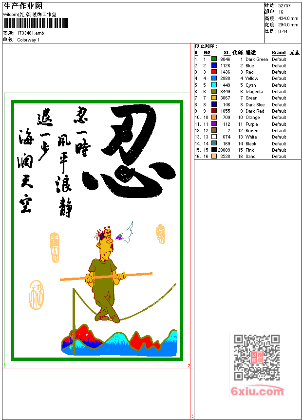 字 忍工艺精品 点此上传花版兑乐绣币/现金 emb花版参数: 大小:151.00 KB / 尺寸:294*434[毫米] / 针数:52773针 / 线色:16 / 格式:emb / 版本:7 版带文件需绣花软件方可打开,可配色打印导出各种格式或直接上机绣。如无绣花软件可下载1:1模拟效果图。 PNG图片信息:大小:1.0 (MB) /图宽*高:1113x1642(像素) 上传作者( 雷人*** ) 获得乐绣币:30个 emb下载 1:1图下载 关闭 相似花型推荐: 卡通 动漫 人物 犬夜叉工艺精品 字 福寿禄喜工艺精品 龙 凤凰 福寿安康吉祥工艺精品 凤凰工艺精品 牡丹花-中国风传统 人物-海盗 章仔 男装 领-喇叭花 龙-古典 花-单朵彼岸花 花 彼岸花三支 曲线 复古图案 蝴蝶 龙凤图-凤凰衣吉祥传统戏服 猴子 卡通 动物 猩猩 花草-大花 家纺 上一个花样:生日快乐工艺精品 下一个花样:卡通 动漫 人物 犬夜叉工艺精品