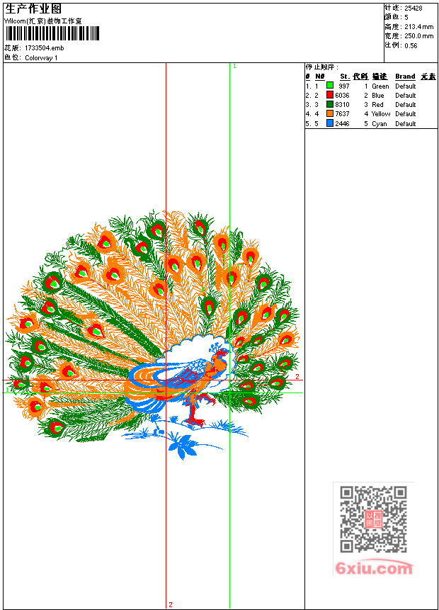 孔雀开屏工艺精品 点此上传花版兑乐绣币/现金 emb花版参数: 大小:138.50 KB / 尺寸:250*213[毫米] / 针数:25428针 / 线色:5 / 格式:emb / 版本:7 版带文件需绣花软件方可打开,可配色打印导出各种格式或直接上机绣。如无绣花软件可下载1:1模拟效果图。 PNG图片信息:大小:1.0 (MB) /图宽*高:946x807(像素) 上传作者( 雷人*** ) 获得乐绣币:30个 emb下载 1:1图下载 关闭 相似花型推荐: 孔雀工艺精品 家和万事兴图案工艺精品 大花朵工艺精品 盆景花工艺 虎啸工艺精品 福 万事如意工艺精品 腾飞的龙工艺精品 风景 唐伯虎山水画工艺精品 四君子梅兰竹菊兰工艺精品 凤凰 雙鳳工艺精品 寿字工艺精品 时钟 鸟 工艺精品 树 狗 十二生肖之狗 艺精品 十二生肖拜寿-----十二生肖工艺精品 龙 上一个花样:孔子字画工艺精品 下一个花样:孔雀工艺精品