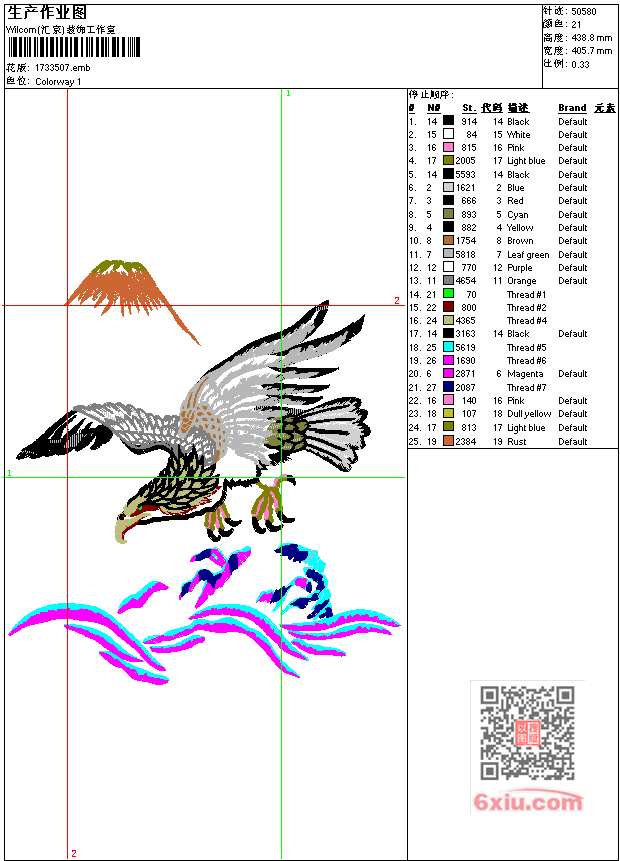 鸟 老鹰工艺精品 点此上传花版兑乐绣币/现金 emb花版参数: 大小:309.50 KB / 尺寸:406*439[毫米] / 针数:50580针 / 线色:21 / 格式:emb / 版本:7 版带文件需绣花软件方可打开,可配色打印导出各种格式或直接上机绣。如无绣花软件可下载1:1模拟效果图。 PNG图片信息:大小:1.6 (MB) /图宽*高:1535x1660(像素) 上传作者( 雷人*** ) 获得乐绣币:30个 emb下载 1:1图下载 关闭 相似花型推荐: 老虎工艺精品 孔子字画工艺精品 孔雀开屏工艺精品 孔雀工艺精品 家和万事兴图案工艺精品 大花朵工艺精品 盆景花工艺 虎啸工艺精品 福 万事如意工艺精品 腾飞的龙工艺精品 风景 唐伯虎山水画工艺精品 四君子梅兰竹菊兰工艺精品 凤凰 雙鳳工艺精品 寿字工艺精品 时钟 鸟 工艺精品 上一个花样:鸟 老鹰工艺精品 下一个花样:老虎工艺精品