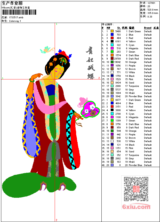 美女 贵妃戏蝶工艺精品 点此上传花版兑乐绣币/现金 emb花版参数: 大小:420.00 KB / 尺寸:335*521[毫米] / 针数:127991针 / 线色:20 / 格式:emb / 版本:7 版带文件需绣花软件方可打开,可配色打印导出各种格式或直接上机绣。如无绣花软件可下载1:1模拟效果图。 PNG图片信息:大小:2.0 (MB) /图宽*高:1268x1970(像素) 上传作者( 雷人*** ) 获得乐绣币:30个 emb下载 1:1图下载 关闭 相似花型推荐: 观音 佛 工艺精品 观世音菩萨佛 工艺精品 恭喜发财工艺精品 龙 恭贺新喜工艺精品 福 恭贺新禧工艺精品 鸳鸯工艺精品 松鹤长春工艺精品 鹤 瀑布 人间仙境工艺精品 鸟 老鹰工艺精品 鸟 老鹰工艺精品 老虎工艺精品 孔子字画工艺精品 孔雀开屏工艺精品 孔雀工艺精品 家和万事兴图案工艺精品 上一个花样:荷花珠片工艺精品 下一个花样:观音 佛 工艺精品