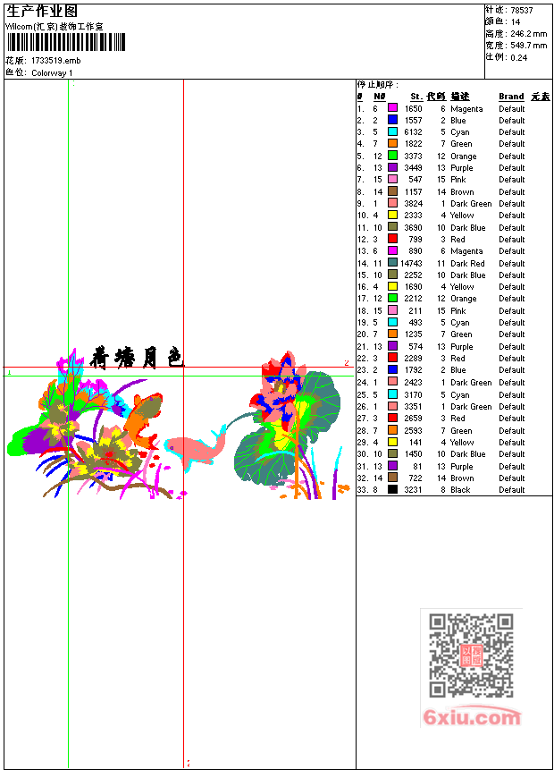 荷塘月色工艺精品 点此上传花版兑乐绣币/现金 emb花版参数: 大小:418.50 KB / 尺寸:550*246[毫米] / 针数:78537针 / 线色:14 / 格式:emb / 版本:7 版带文件需绣花软件方可打开,可配色打印导出各种格式或直接上机绣。如无绣花软件可下载1:1模拟效果图。 PNG图片信息:大小:1.9 (MB) /图宽*高:2080x932(像素) 上传作者( 雷人*** ) 获得乐绣币:30个 emb下载 1:1图下载 关闭 相似花型推荐: 荷花珠片工艺精品 美女 贵妃戏蝶工艺精品 观音 佛 工艺精品 观世音菩萨佛 工艺精品 恭喜发财工艺精品 龙 恭贺新喜工艺精品 福 恭贺新禧工艺精品 鸳鸯工艺精品 松鹤长春工艺精品 鹤 瀑布 人间仙境工艺精品 鸟 老鹰工艺精品 鸟 老鹰工艺精品 老虎工艺精品 孔子字画工艺精品 孔雀开屏工艺精品 上一个花样:凤凰工艺精品 下一个花样:荷花珠片工艺精品