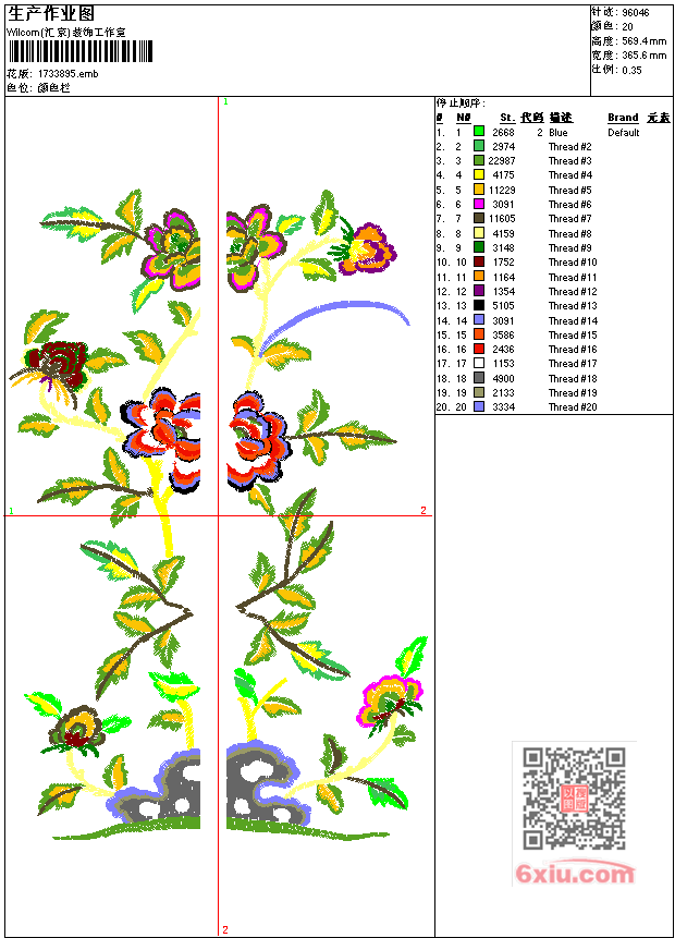 对称花工艺精品 点此上传花版兑乐绣币/现金 emb花版参数: 大小:982.00 KB / 尺寸:366*569[毫米] / 针数:96047针 / 线色:20 / 格式:emb / 版本:9 版带文件需绣花软件方可打开,可配色打印导出各种格式或直接上机绣。如无绣花软件可下载1:1模拟效果图。 PNG图片信息:大小:2.0 (MB) /图宽*高:1383x2154(像素) 上传作者( 雷人*** ) 获得乐绣币:30个 emb下载 1:1图下载 关闭 相似花型推荐: 鹰 长城 大展宏图乱针绣工艺精品 春夏秋冬-冬工艺精品 春鸟图工艺精品 赤龙天降工艺精品 风景 长城乱针绣工艺精品 牡丹花 彩蝶迎春工艺精品 人物 财神到工艺精品 人物财神工艺精品 马 冰与火工艺精品 报喜鸟工艺精品 字画诗 书法 百忍成金工艺精品 鸳鸯 百年好合工艺精品 百马图工艺精品 百合乱针绣工艺精品 字 百福工艺精品 上一个花样:方福工艺精品 下一个花样:鹰 长城 大展宏图乱针绣工艺精品