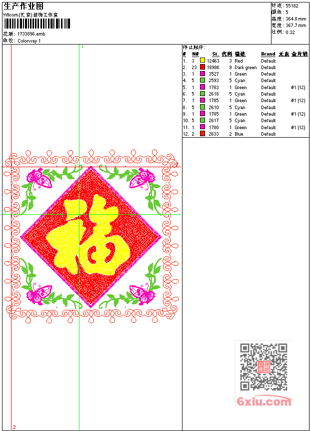方福工艺精品 点此上传花版兑乐绣币/现金 emb花版参数: 大小:238.50 KB / 尺寸:368*365[毫米] / 针数:55182针 / 线色:5 / 格式:emb / 版本:9 版带文件需绣花软件方可打开,可配色打印导出各种格式或直接上机绣。如无绣花软件可下载1:1模拟效果图。 PNG图片信息:大小:1.8 (MB) /图宽*高:1391x1380(像素) 上传作者( 雷人*** ) 获得乐绣币:30个 emb下载 1:1图下载 关闭 相似花型推荐: 对称花工艺精品 鹰 长城 大展宏图乱针绣工艺精品 春夏秋冬-冬工艺精品 春鸟图工艺精品 赤龙天降工艺精品 风景 长城乱针绣工艺精品 牡丹花 彩蝶迎春工艺精品 人物 财神到工艺精品 人物财神工艺精品 马 冰与火工艺精品 报喜鸟工艺精品 字画诗 书法 百忍成金工艺精品 鸳鸯 百年好合工艺精品 百马图工艺精品 百合乱针绣工艺精品 上一个花样:房子圣诞树工艺精品 下一个花样:对称花工艺精品