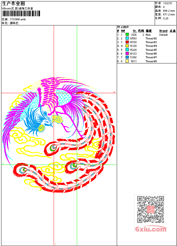 凤飞九天工艺精品 凤凰 点此上传花版兑乐绣币/现金 emb花版参数: 大小:253.00 KB / 尺寸:671*688[毫米] / 针数:133215针 / 线色:8 / 格式:emb / 版本:9 版带文件需绣花软件方可打开,可配色打印导出各种格式或直接上机绣。如无绣花软件可下载1:1模拟效果图。 PNG图片信息:大小:4.2 (MB) /图宽*高:2539x2604(像素) 上传作者( 雷人*** ) 获得乐绣币:30个 emb下载 1:1图下载 关闭 相似花型推荐: 凤凰 吉祥如意 工艺精品 风景 船 工艺精品 房子圣诞树工艺精品 方福工艺精品 对称花工艺精品 鹰 长城 大展宏图乱针绣工艺精品 春夏秋冬-冬工艺精品 春鸟图工艺精品 赤龙天降工艺精品 风景 长城乱针绣工艺精品 牡丹花 彩蝶迎春工艺精品 人物 财神到工艺精品 人物财神工艺精品 马 冰与火工艺精品 报喜鸟工艺精品 上一个花样:孔雀 大花 枝留工艺精品 下一个花样:凤凰 吉祥如意 工艺精品